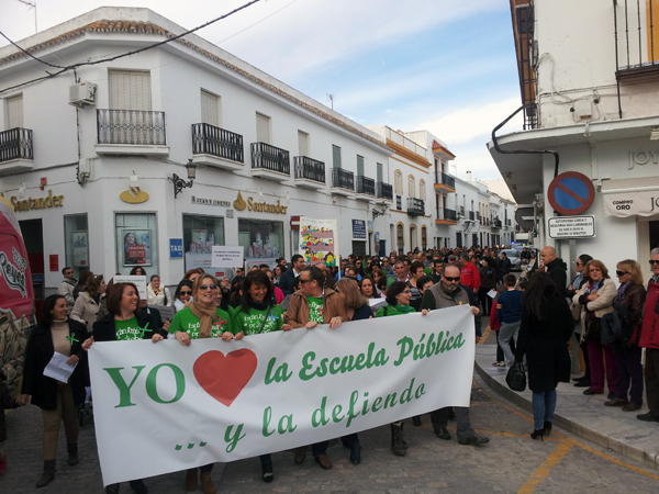 Varios centenares de personas han acompañado a las Asociaciones de Madres y Padres del alumnado de Moguer en su recorrido-protesta contra los recortes que sufre la educación pública.