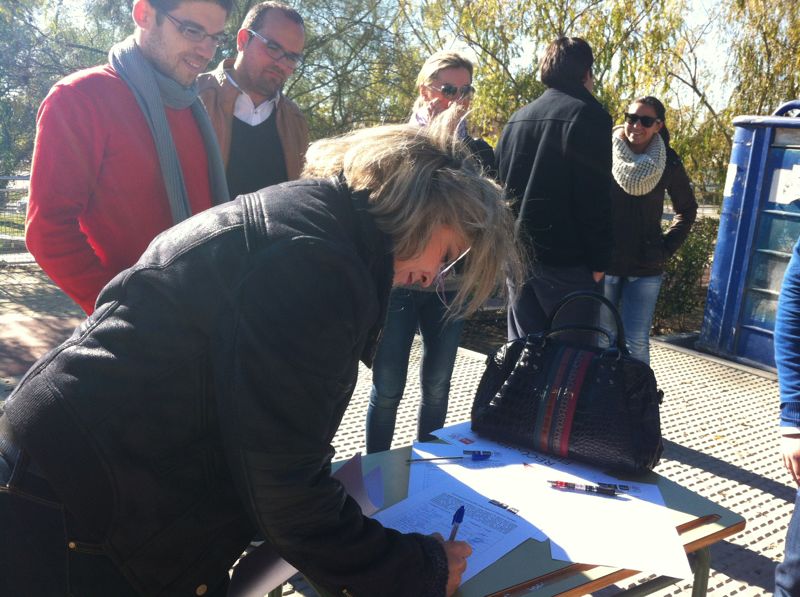 El arranque de esta campaña también ha tenido lugar en Moguer. José Manuel Domínguez, Secretario General de JJSS de Moguer, acompañado por el Secreatario General de JSA, José Carlos Durán, la Secretaria General de JJSS de Huelva, María Márquez, el Secretario de Educación de la agupación local del PSOE local, Juan de Dios Rodríguez, la Concejala de Educación del Ayuntamiento de Moguer y miembro de la ejecutiva local, Lourdes Garrido, y otros componentes de las Juventudes Socialistas Moguereñas han iniciado la campaña en la puerta del Instituto Juan Ramón Jiménez de la localidad protagonizando una recogida de firmas contra la mencionada ley durante el tiempo de recreo.