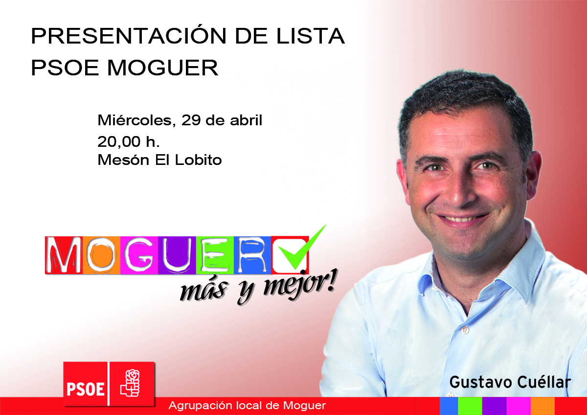 PRESENTACIÓN DE CANDIDATURA Y LISTA. ELECCIONES 2015Publicado el Martes, 21 Abril 2015 21:33 | Escrito por Psoemoguer | Visitas: 1622 Tweet < PrevioSiguiente >