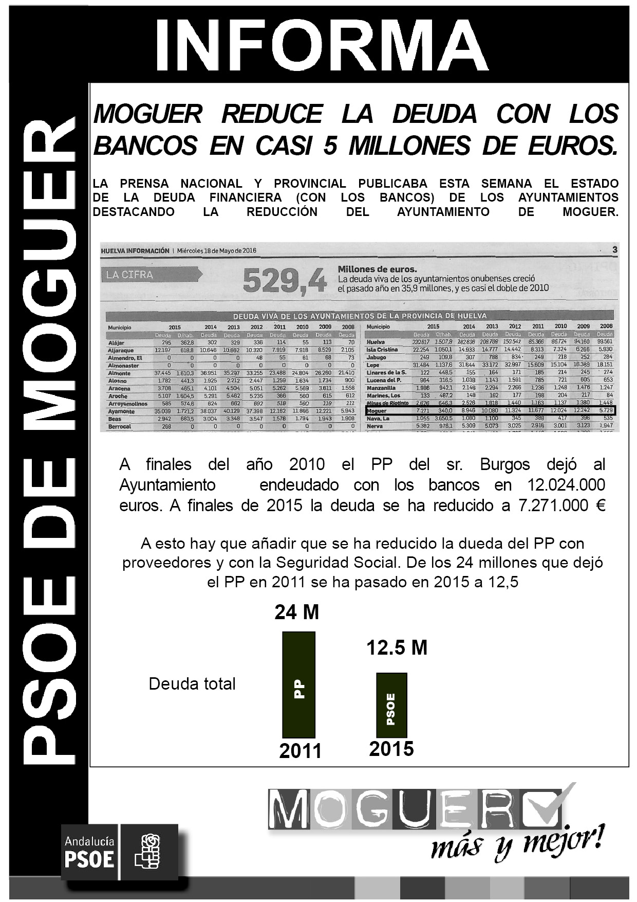 EL PSOE SIGUE REDUCIENDO DEUDA EN MOGUERPublicado el Sábado, 28 Mayo 2016 09:05 | Escrito por Psoemoguer | Visitas: 1891 Tweet < PrevioSiguiente >